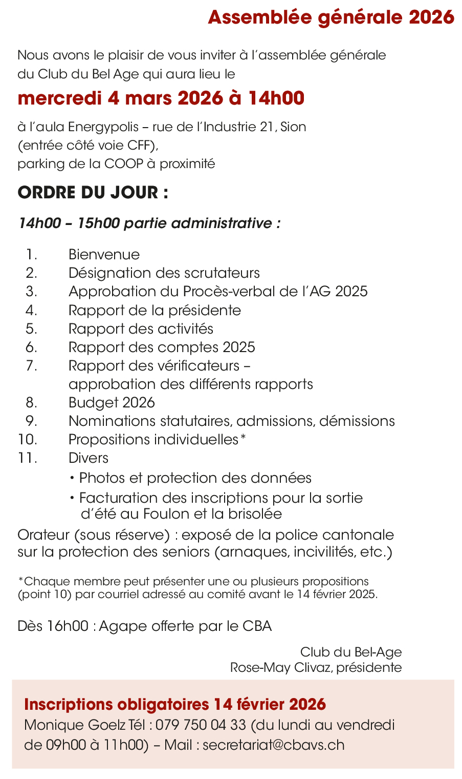 4 MARS – Assemblée générale – Sion